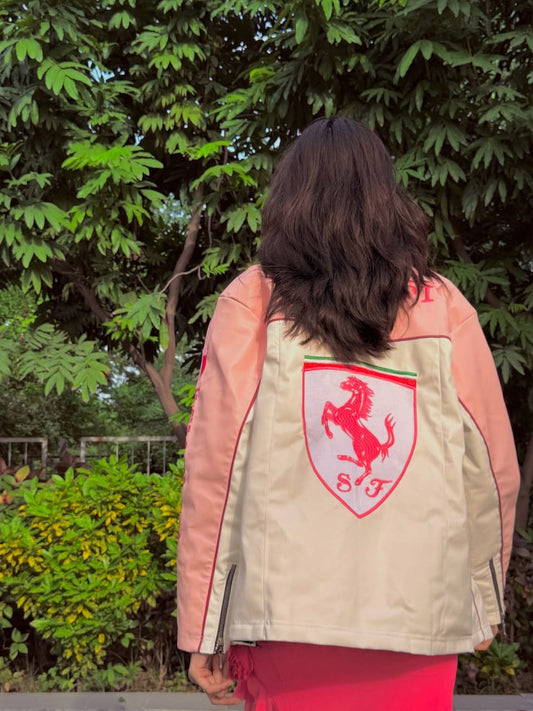 Ferrari racing fully embroidered jacket in pink for girls | Xoratic.